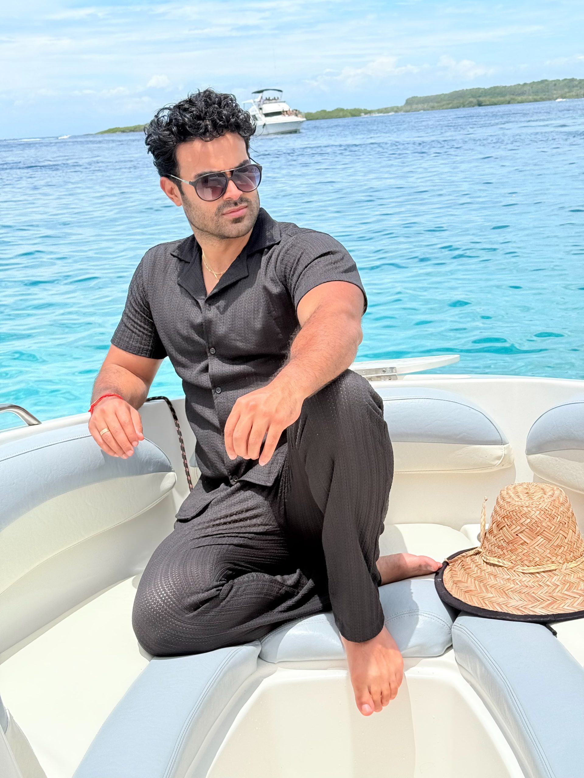Sobrio y atemporal, este set playero negro es la opción perfecta para quienes buscan elegancia incluso bajo el sol. Su tela ligera garantiza comodidad mientras su diseño moderno te asegura un look impecable en todo momento.