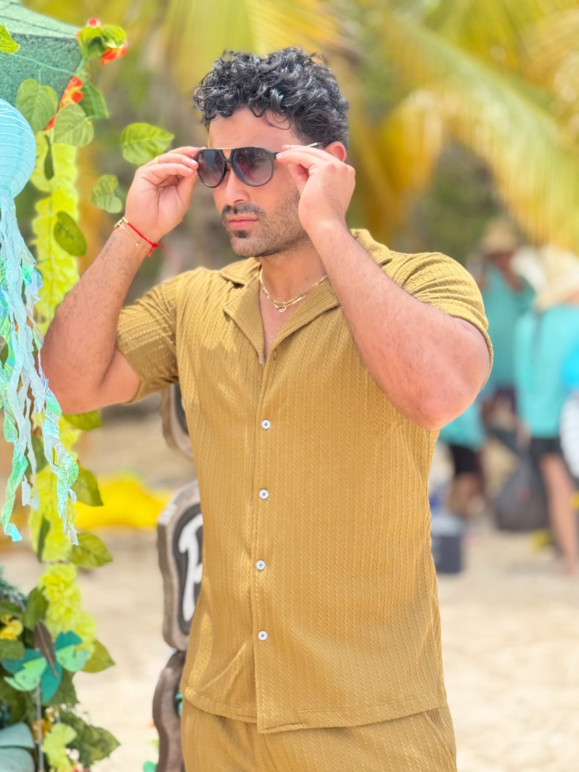 Refrescante y vibrante, este set playero verde transmite energía y naturalidad en cada detalle. Confeccionado en tela ligera y cómoda, es ideal para disfrutar bajo el sol con un look casual que destaca sin esfuerzo.